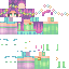 A purple-haired girl wearing a sweater, skirt and flower crown.