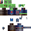 A humanoid slime wearing a blue shirt and brown trousers with futuristic robotic accessories.
