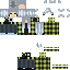 A girl with white hair wearing a green plaid jacket and simple jeans with shoes.