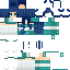 A girl wearing an ocean themed outfit with dark blue hair.