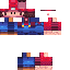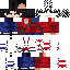Boy with ocean blue hair wearing matching blue shorts and a tropical orange shirt.