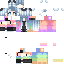 Girl with silver hair wearing a rainbow-coloured jumper and matching socks.