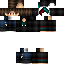 A teenage boy with emo hair, a black jacket and ripped jeans.